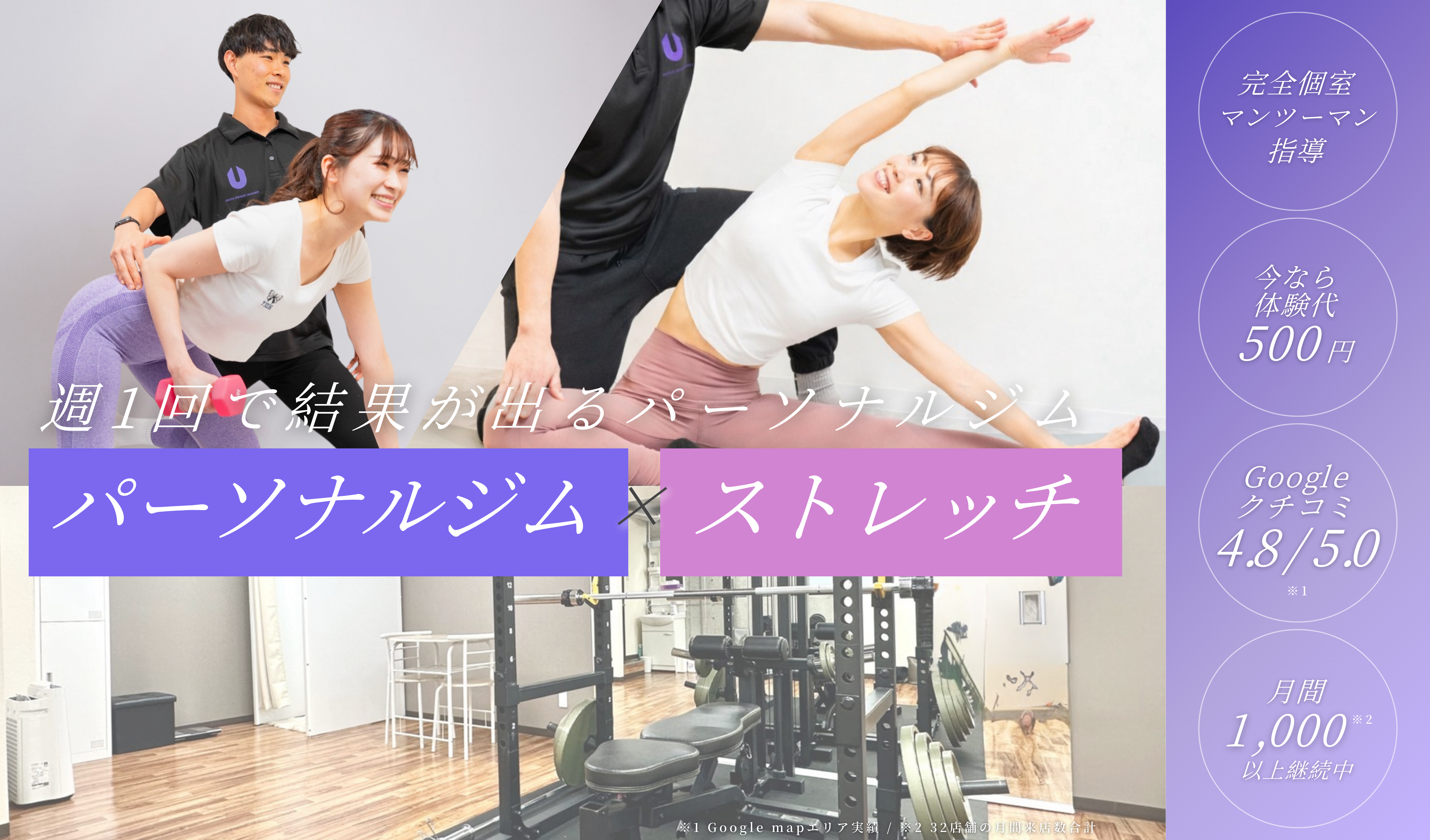 また、スタジオUは全店最寄駅から徒歩3分前後と通いやすい場所にあり、より結果が出やすい環境です。